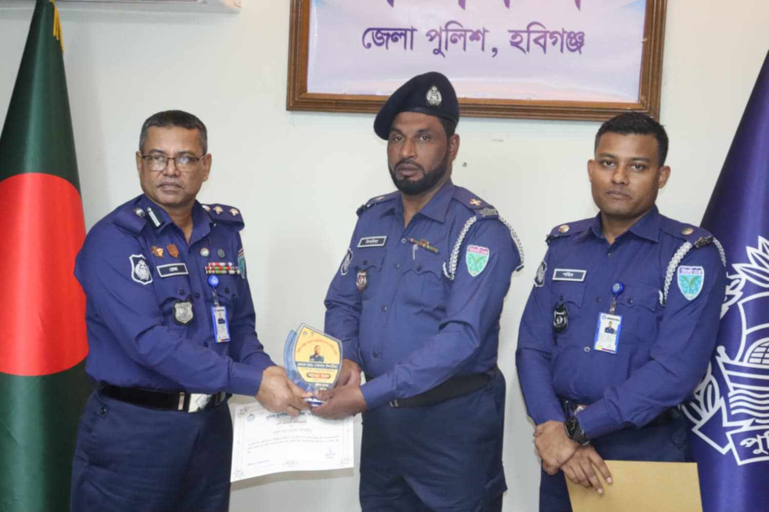 হবিগঞ্জের পুলিশ সুপারের কার্যালয় থেকে পুরস্কার পেয়েছেন এএসআই গোলাম কিবরিয়া