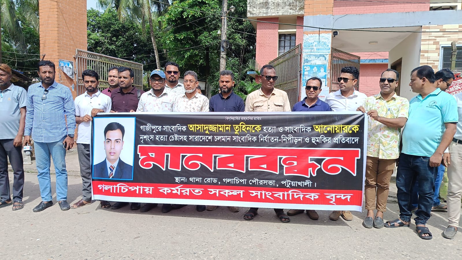 সাংবাদিক তুহিন হত্যার প্রতিবাদ ও বিচারের দাবিতে গলাচিপায় মানববন্ধন ও কলম বিরতি