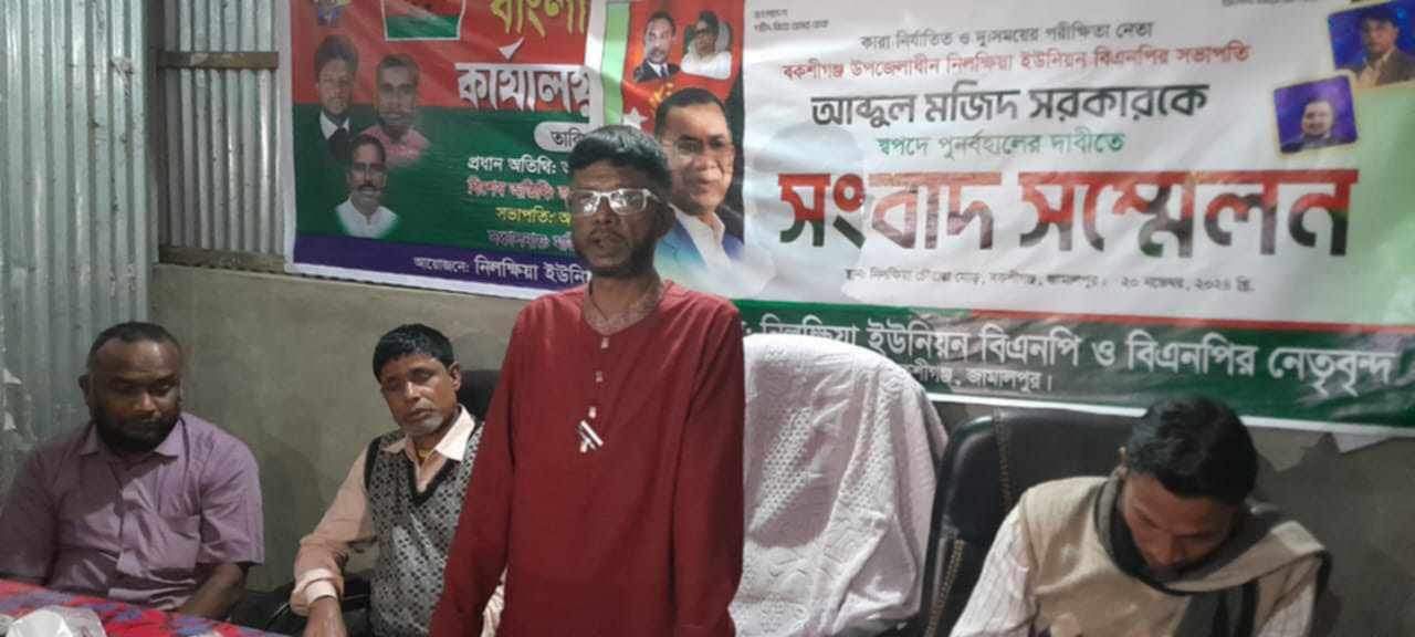 বকশীগঞ্জে নিলাখিয়া বিএনপি নেতাকে স্বপদে বহালের দাবিতে সংবাদ সম্মেলন